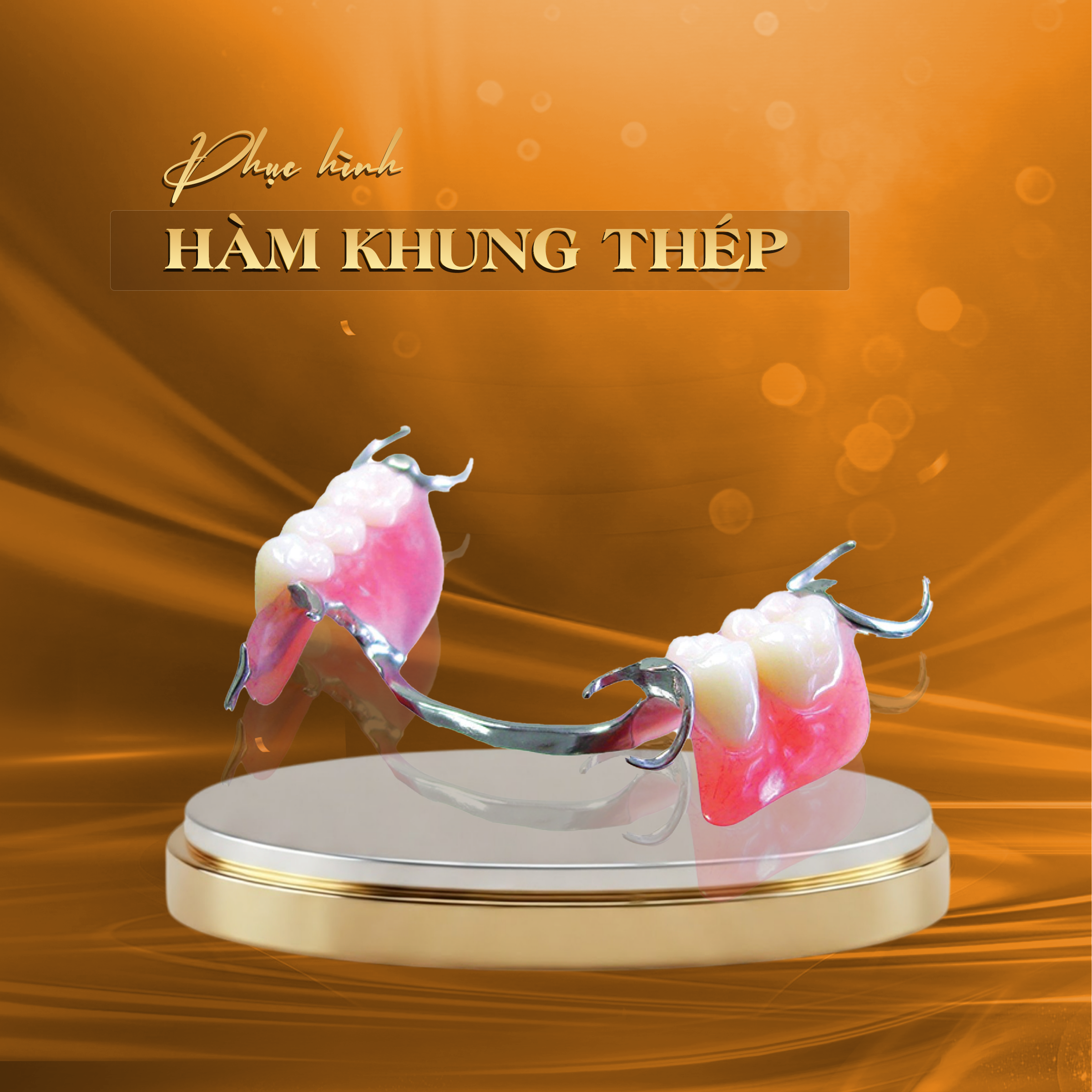 Hàm tháo lắp khung thép là một dạng phục hình răng giả tháo lắp, có cấu trúc khung sườn được làm từ kim loại hoặc hợp kim titan, với các tay móc tựa vào răng trụ còn chắc khỏe. Khác với hàm tháo lắp nhựa cứng hay nhựa dẻo, phần khung của loại hàm này được đúc liền khối, gồm tay móc – yên – thanh nối chắc chắn, răng giả được gắn bằng nhựa Acrylic.