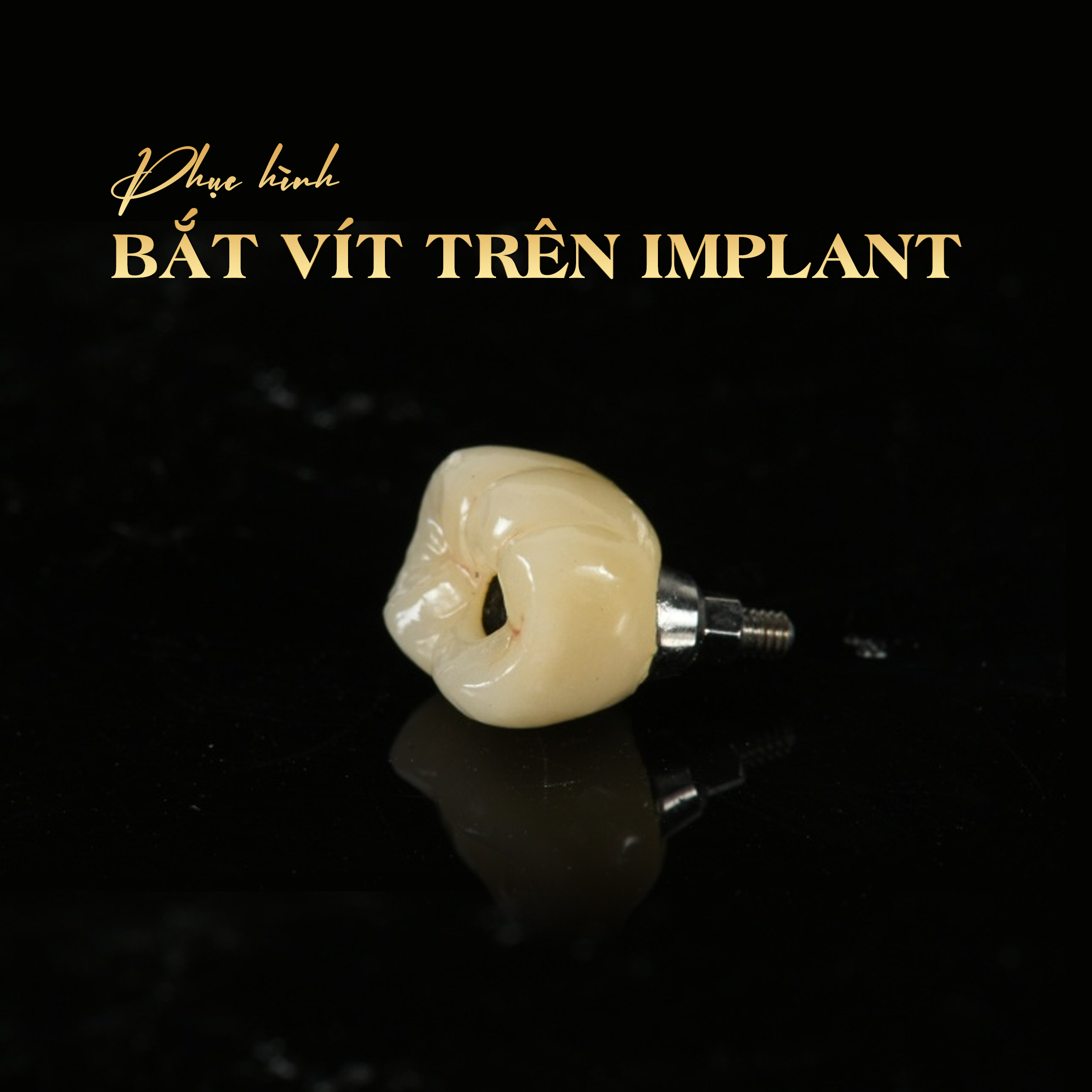 – Mão sứ hoặc cầu sứ được cố định lên Abutment bằng ốc vít nha khoa qua một lỗ nhỏ trên thân răng.