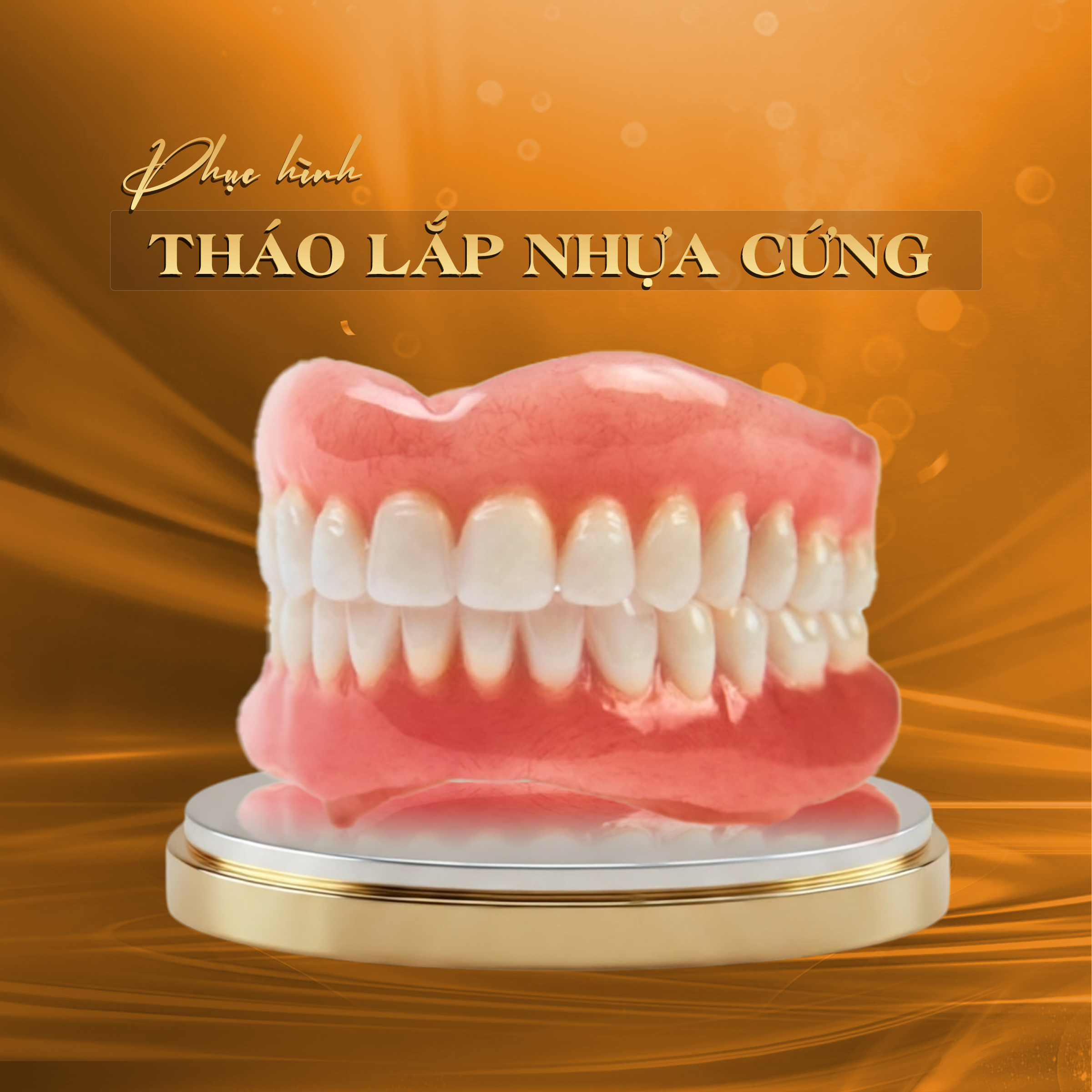 Hàm tháo lắp nhựa thường được sử dụng trong trường hợp bệnh nhân mất nhiều răng xen kẽ hoặc mất toàn bộ răng. Loại răng giả này tựa vào niêm mạc, lực nhai truyền trực tiếp từ lợi xuống xương hàm.