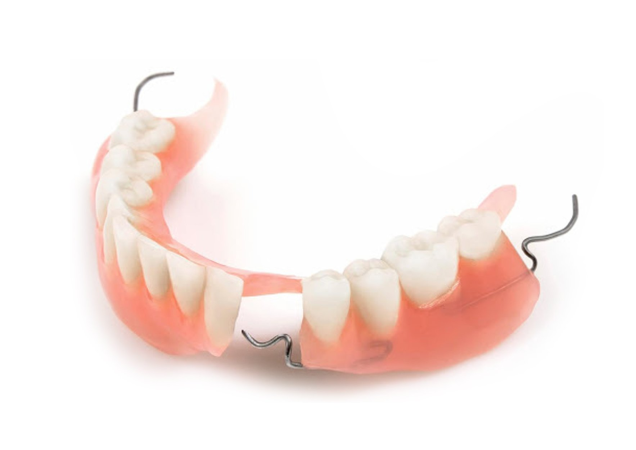 – Hàm bán phần: Gồm răng giả, nền hàm nhựa cứng và móc kim loại.