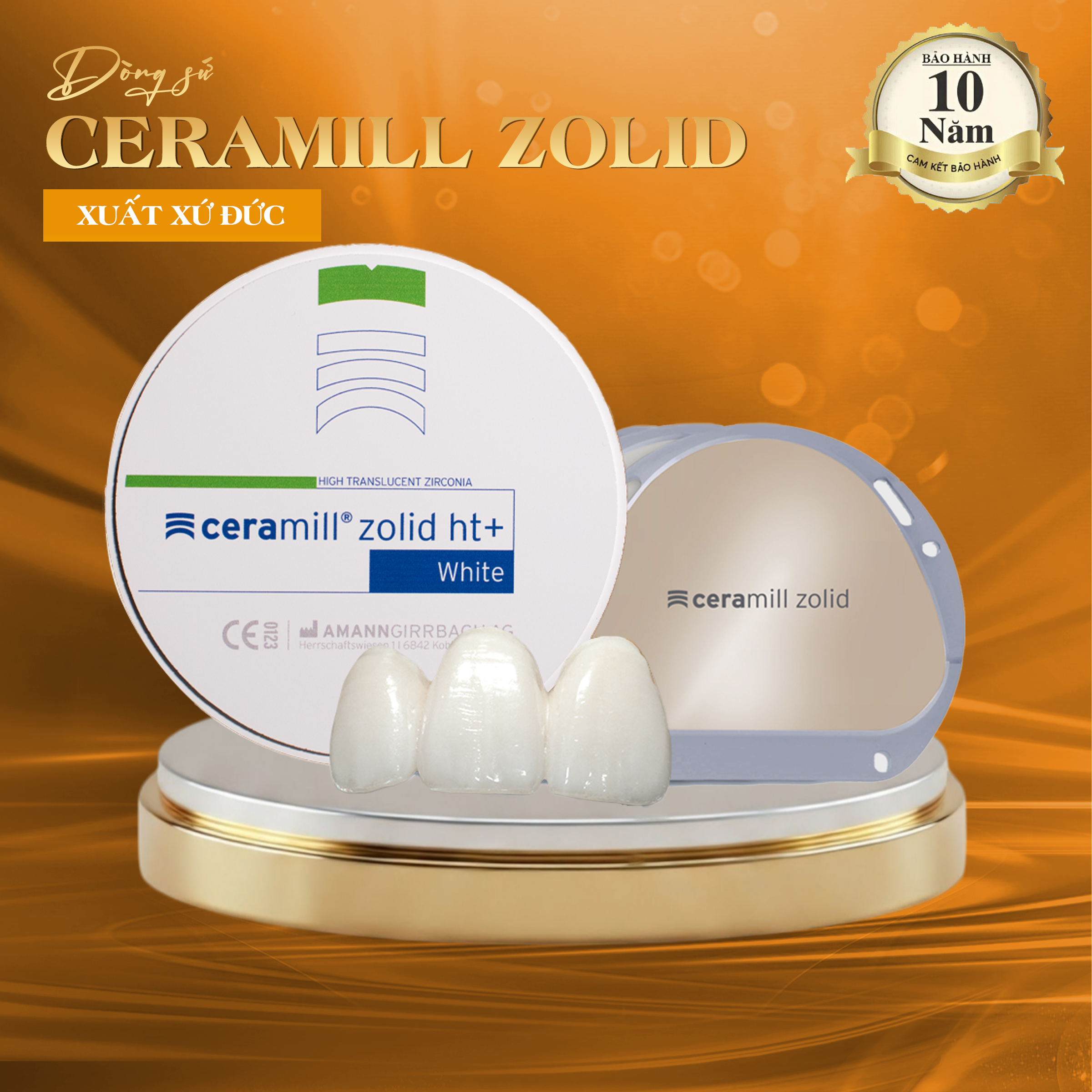 Răng sứ Ceramill được làm từ vật liệu Ceramill Zolid có cấu tạo đa lớp màu trắng đục, tích hợp độ bóng mô phỏng men răng và ngà răng. Đặc biệt, kết cấu của Ceramill Zolid có độ bền cao với khả năng chịu lực lên tới 1500 Mpa. Được sản xuất bằng công nghệ CAD/CAM với độ chính xác tuyệt đối, răng sứ Ceramill đem đến độ mỏng hoàn hảo, có thể sử dụng cho dán sứ mà không cần mài nhiều men răng như các loại sứ khác.