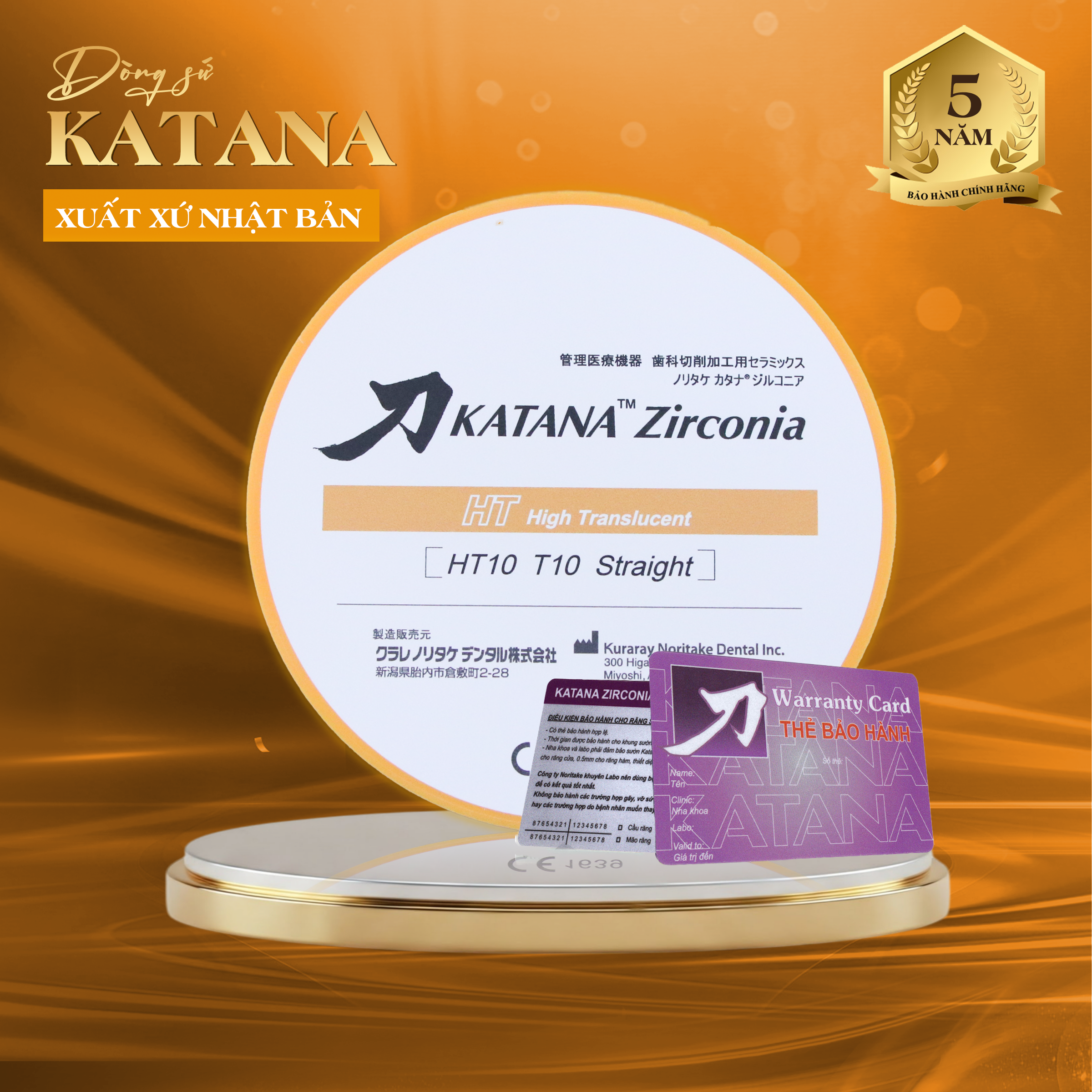 Katana Zirconia là dòng zirconia đa lớp (multi-layered zirconia), được ứng dụng công nghệ phủ nhiều lớp màu và độ sáng. Chính nhờ vậy, răng sứ Katana có sự chuyển màu tự nhiên từ cổ răng đến cạnh cắn, tạo nên hiệu ứng sống động và gần như không thể phân biệt với răng thật.